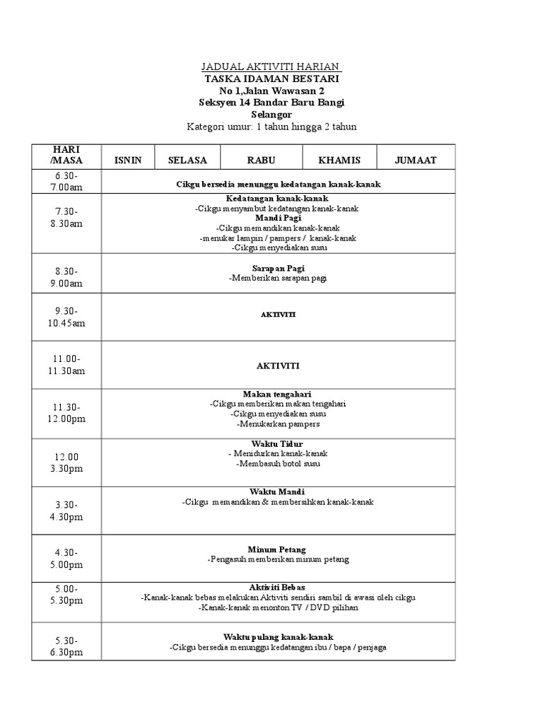 Contoh Jadual Harian : Download contoh jadwal kegiatan harian anak terbaru.