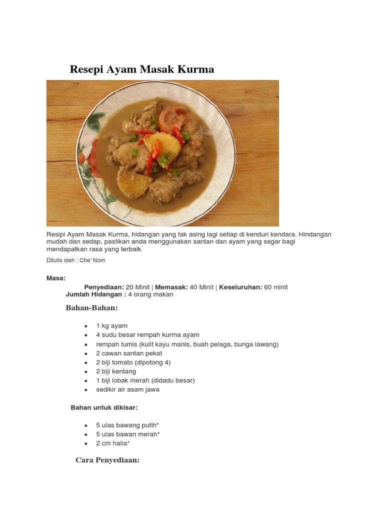 Lauk ini dimasak selepas nana balik dari hospital. Turun temurun.masak untuk cik abang pasti menyelerakan. Kurmatelurmudah #kurmatelur #kurmatelursedap kurma telur mudah dimasak. Sebut sahaja resepi ayam masak kurma, terus terbayang menu hidangan ini disediakan bersama nasi hujan panas atau nasi minyak bersama acar jementah ramai sahaja yang guna daging lembu atau pun daging kambing sebagai pengganti kepada daging ayam terutama di majlis kenduri perkahwinan. Untuk resep dengan bahan dasar daging kambing, lihat kumpulan resep olahan daging kambing di sini. Lauk ini bukan sahaja sedap dimakan bersama sepinggan nasi panas, malah sedap dicicah dengan roti juga. Resepi ayam masak kurma senang dan sedap. Ayam masak kurma sedap macam lauk kenduri kampung. Menu ni sedap dimakan bersama dengan nasi minyak dan acar. Resepi kurma kambing yang sesuai dihidangkan bersama nasi minyak, nasi beriani, nasi tomato, nasi hujan panas atau nasi berperisa yang lain pastinya masa yang lama diperlukan untuk masak daging kambing sehingga lembut, tetapi jika anda mempunyai pressure cooker, masa dapat dijimatkan. 9) ayam masak kurma ala kenduri. Resipi yang belum pernah didedahkan. Resep kambing kecap pedas manis cabai hijau sederhana spesial asli enak.